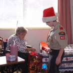 The scouts, leaders, and parents of Troop 422 visited this past Saturday (December 22) with the residents of the Bethany Health Care Center in Nashville. This annual tradition, dating back for the last six years, is the highlight of the troop’s holiday celebration. Accompanied by scout Luke on guitar, the troop sang a collection of Christmas standards while scouts delivered gifts to each of the residents. Santa Claus made time in his busy holiday schedule to personally visit with each of the residents. For many at the health center, this was their Christmas Day, and everyone was filled with joy helping spread the Christmas cheer.